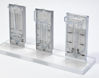 - Nieprzepuszczalne martwe strefy ograniczające na dnie komór zapobiegają zatężaniu próbki do poziomu mniej niż 50 µl.